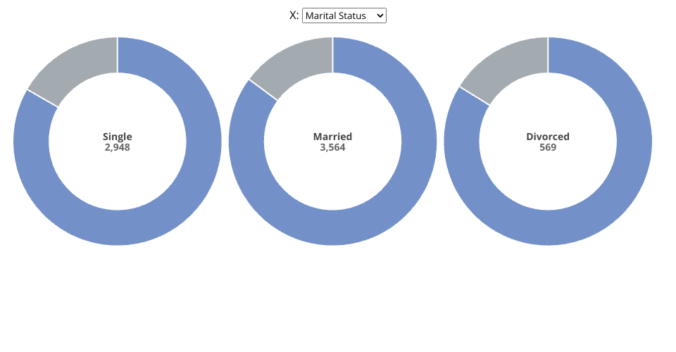 Donut charts using D3 displaying data of credit card utilization from the Bank Customers Dataset.