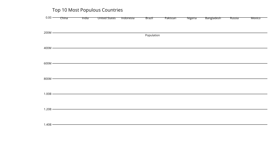 This bar chart shows population of the top 10 most populous countries. The data comes from the year 2018 estimate in United Nations: World Population Prospects 2017. It also demonstrates customization of D3 axes.