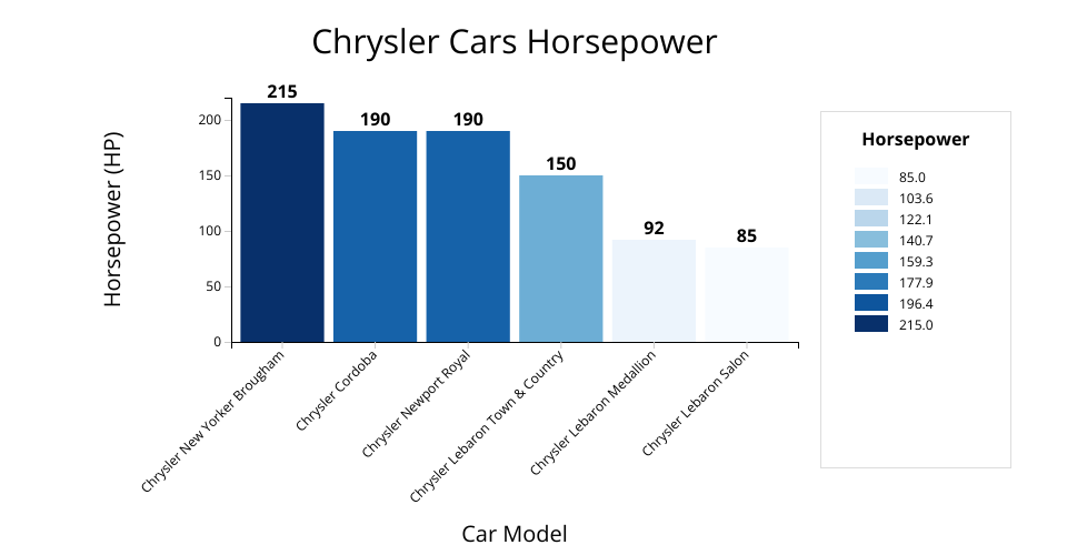 Bar Chart with color Legend: Chrysler cars HP