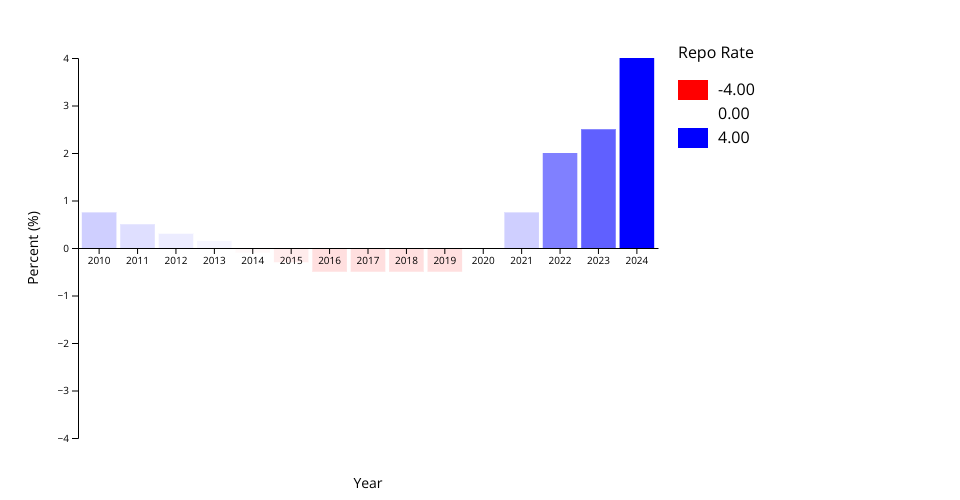 Diverging Bar Chart: Swedish Repo Rent 2010-2024
