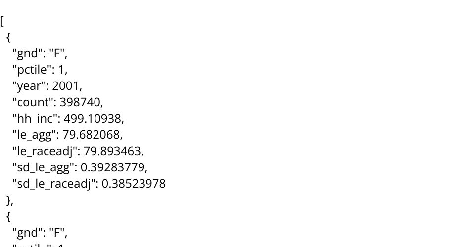 Online Data Table 2 National by-year life expectancy estimates for men and women, by income percentile. This table reports life expectancy estimates for men and women at age 40 for each percentile of the national income distribution separately by year.