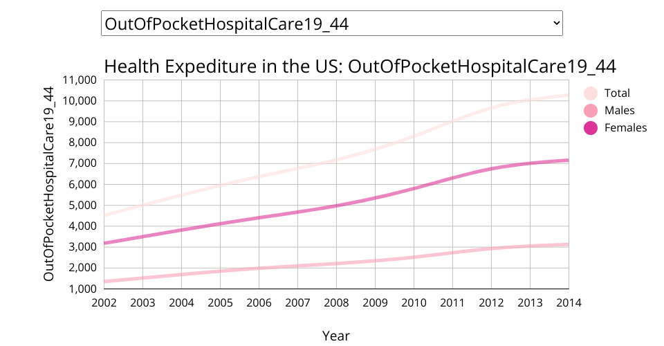 Scatter plot of official estimates of total health care spending in the United States by age group. https://www.cms.gov/Research-Statistics-Data-and-Systems/Statistics-Trends-and-Reports/NationalHealthExpendData/Age-and-Gender