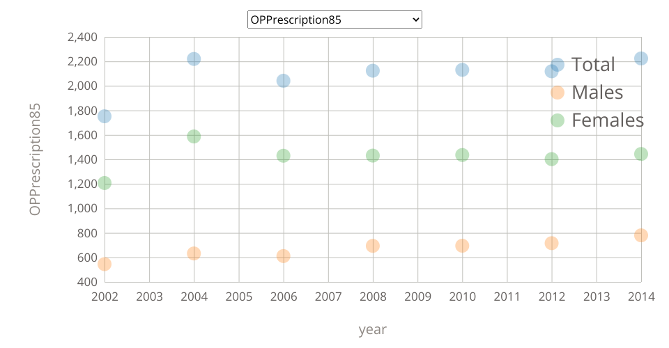 A modification of the original Scatter Plot with Menus showing the addition of a color attribute selector menu.