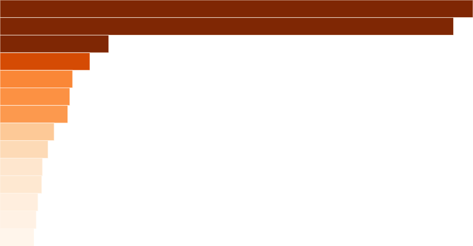 A program that shows the top 10 most populous countries as a pathetic bar chart with no axes.