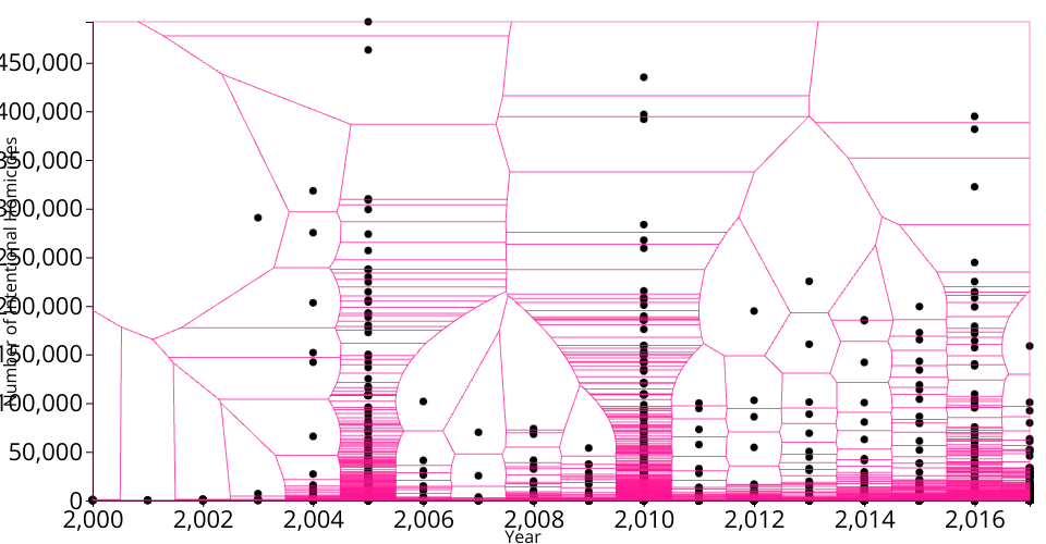 const voronoi = d3.Delaunay .from(data, d => x(d.Year), d => y(d.Value)) .voronoi([margin.left, margin.top, width - margin.right, height - margin.bottom]); // ensures voronoi is limited to the chart area