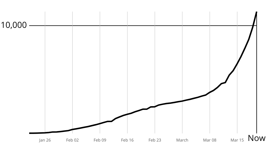 50) Coronavirus Line Chart with 10,000 Marker Line