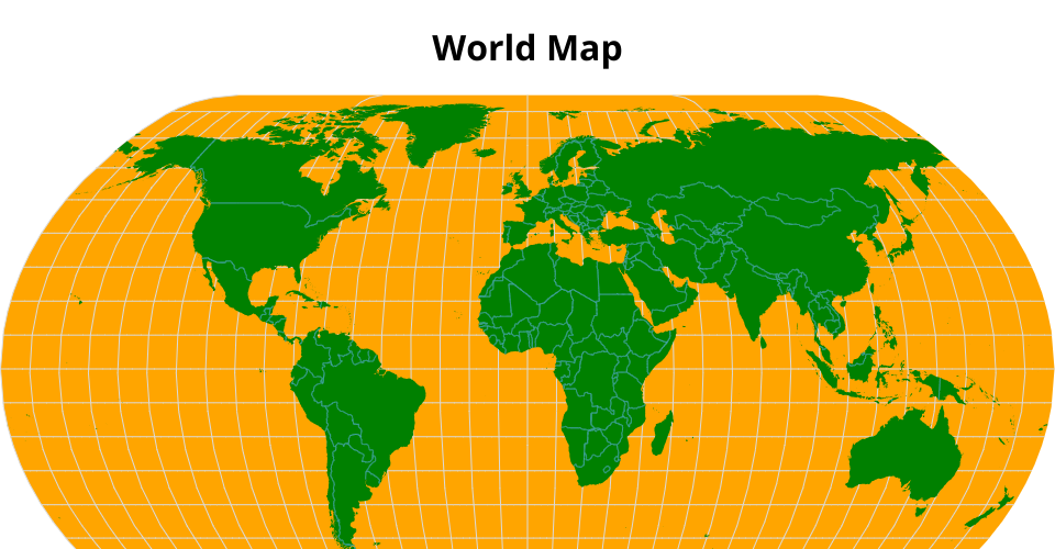 A world map showing country boundaries from World Atlas TopoJSON, polished for visual style, including graticules.