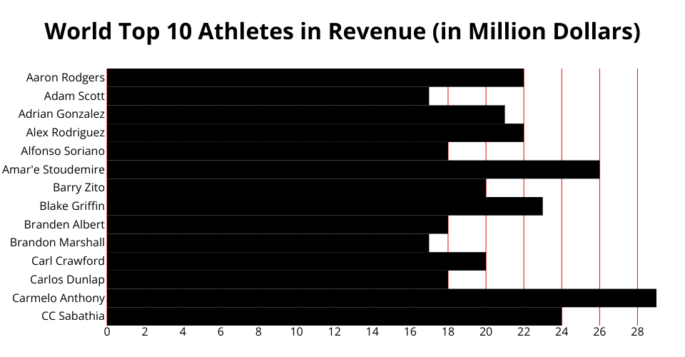 This bar chart shows population of the top 10 most revenue atheletes. It also demonstrates customization of D3 axes.