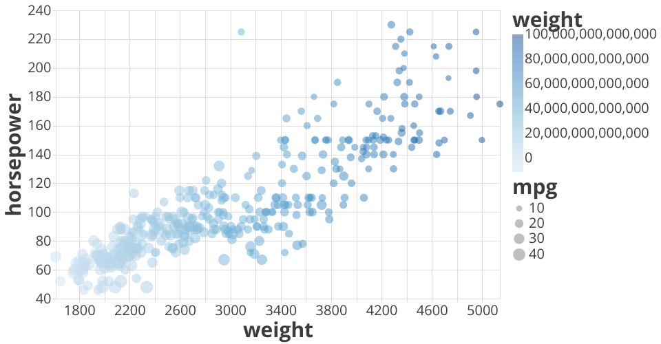 The data shown here comes from the UCI Machine Learning Repository: Auto MPG Data Set, via Gist: Scatter Plot with Menus.