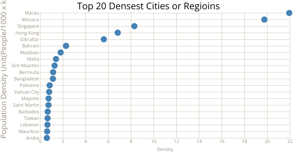 This bar chart shows population density of the top 20 densest cities or region.World Ropulation Review 2021