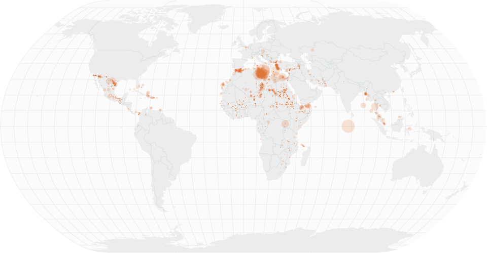 Country boundaries from World Atlas TopoJSON, polished for visual style, including graticules.