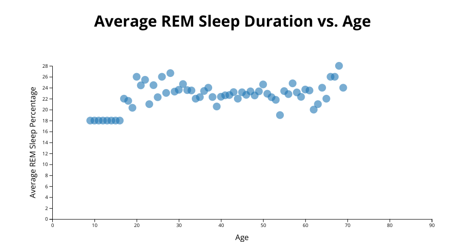 This is a viz on the sleep efficiency dataset. The question this viz aims to answer the question how does age correlate with certain feautres of the dataset. This graph looks at age vs average light sleep duration.