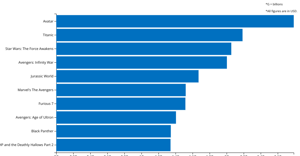 This bar graph shows the top 10 highest grossing movies of all time.