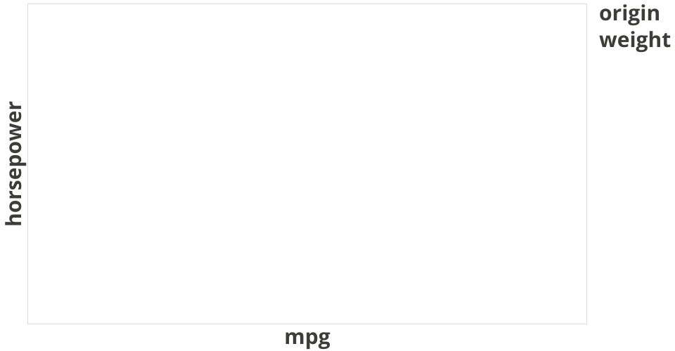 The data shown here comes from the UCI Machine Learning Repository: Auto MPG Data Set, via Gist: Scatter Plot with Menus.