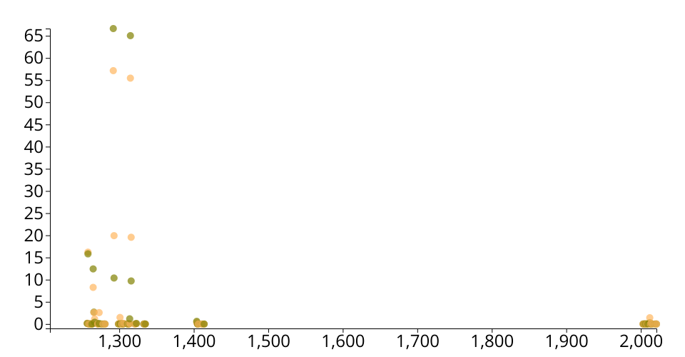 Colors of dots indicate two types of oil, peanut oil and extra light olive oil.