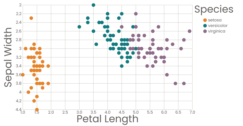 A program that loads in some data about CSS named colors using D3 utilities, and uses React to render a scatter plot of the iris dataset.
