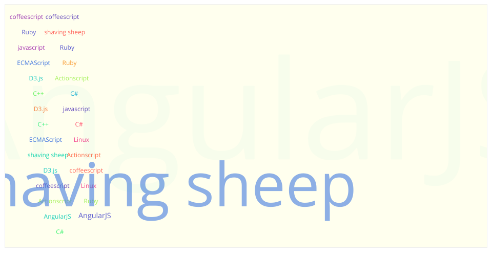 So, I've given up on making a word-cloud, but I have managed to make it rain words!