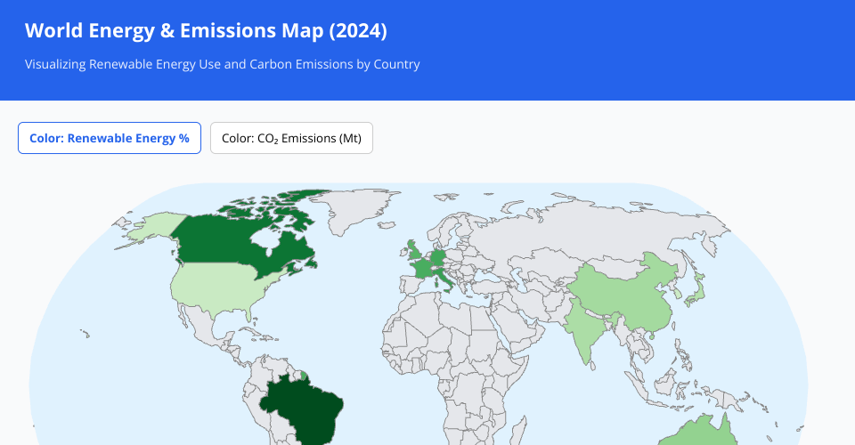 - Toggle between two metrics: Renewable Energy % and CO₂