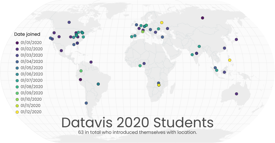 Fork of Fork of Locations of Datavis 2020 Students By Date