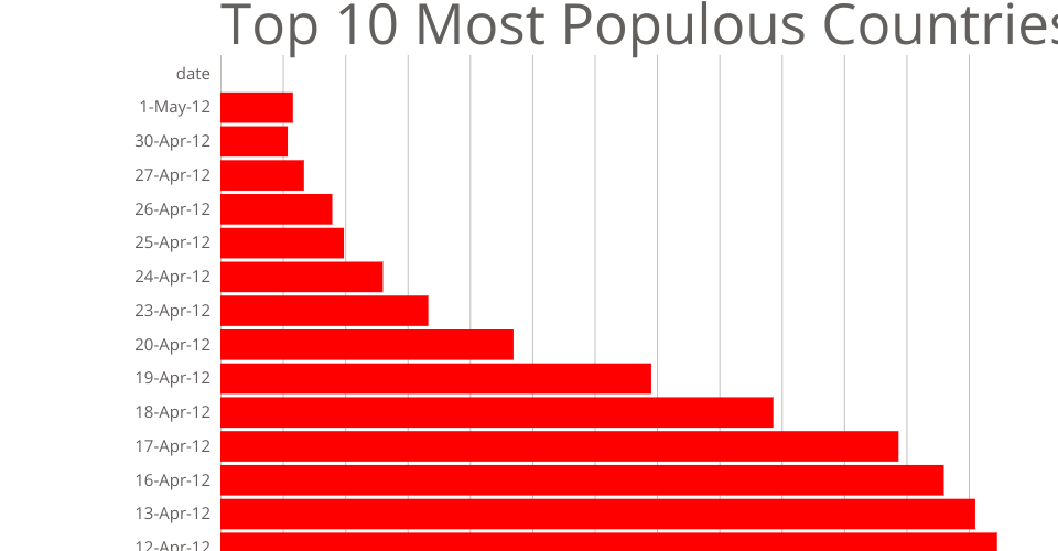 This bar chart shows population of the top 10 most populous countries. The data comes from the year 2018 estimate in United Nations: World Population Prospects 2017. It also demonstrates customization of D3 axes.