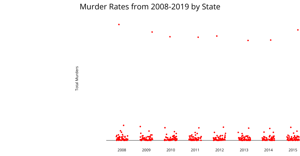 Visualization of the State Crime Rate data from the CORGIS dataset made with p5js. Please fullscreen for proper axis display.