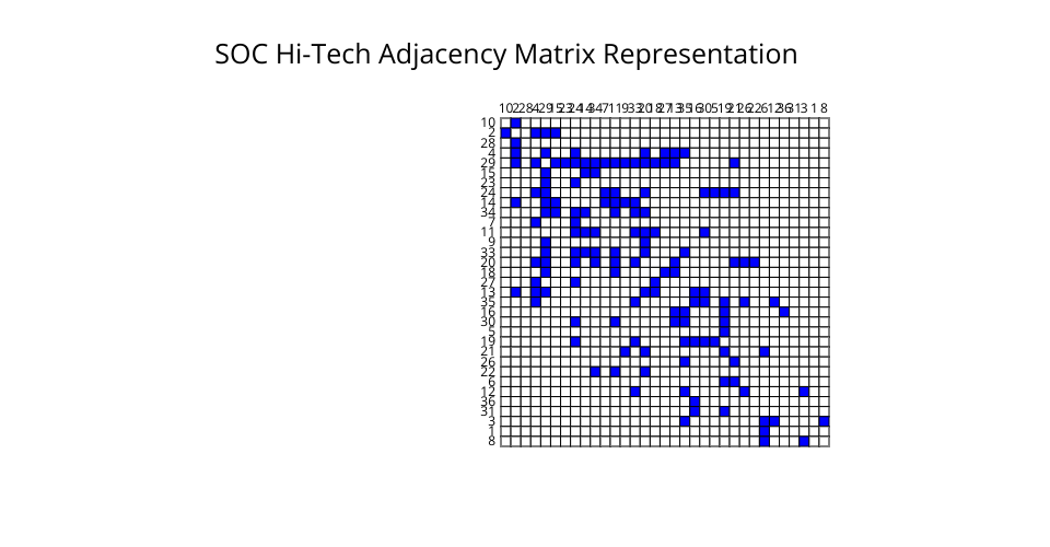 Adjacency matrix visualization of firm-hi-tech from soc made with D3. Implementation partly from D3 Graph Gallery.