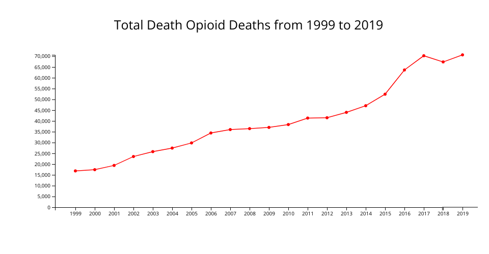 Visualization of total opioid deaths from the CORGIS dataset made with D3. Implementation learned from D3 Graph Gallery.