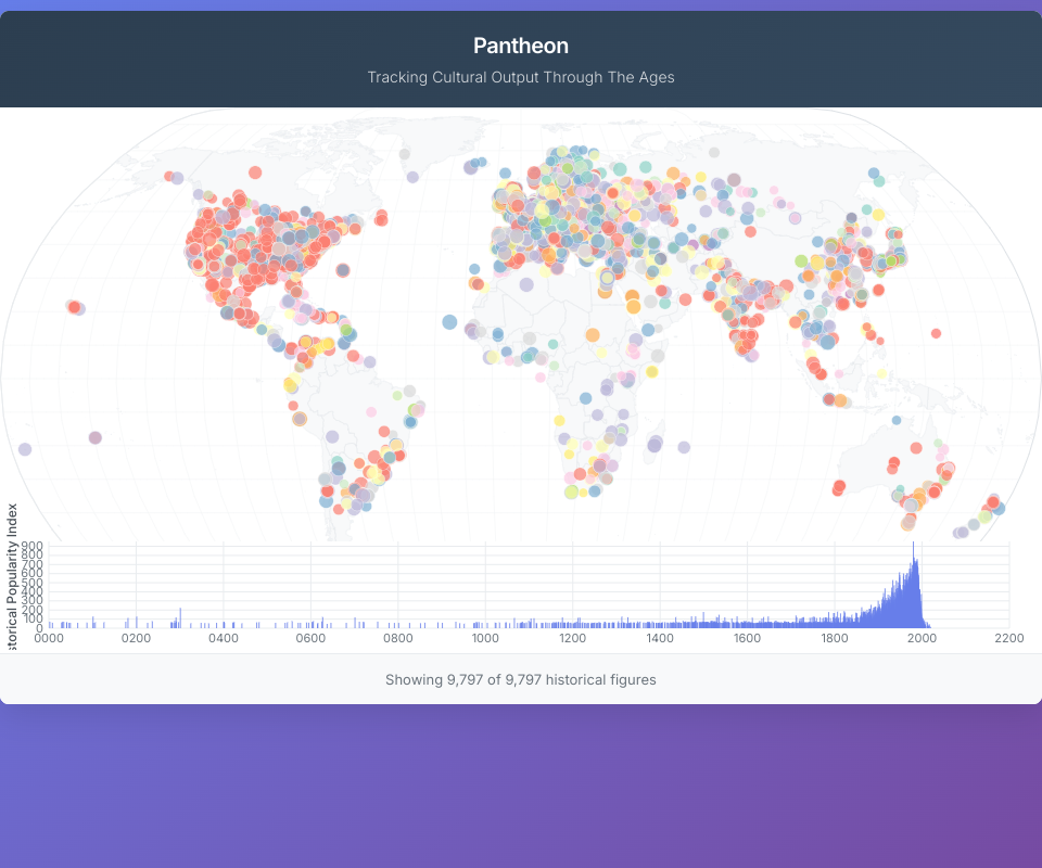 - Interactive World Map: Bubble map showing the birthplaces of historical figures