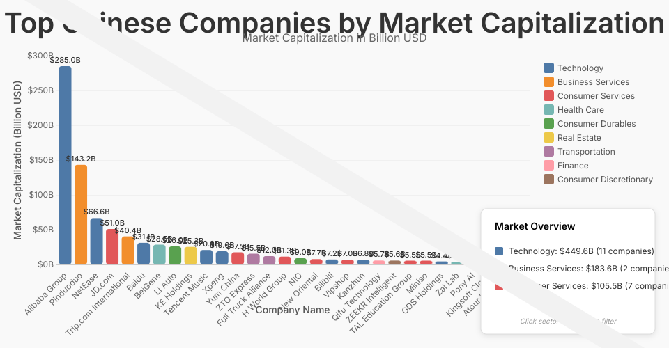 This dashboard visualizes the top Chinese companies by market capitalization, offering an interactive way to explore market data.