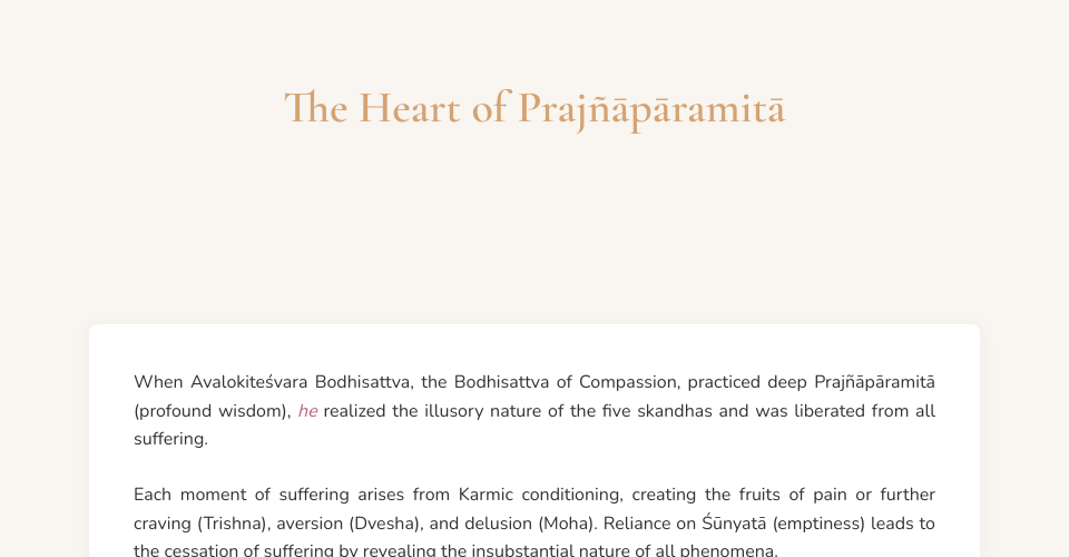 A web-based exploration of key Buddhist concepts from the Heart of Prajñāpāramitā Sutra (Heart Sutra), one of the most important texts in Mahayana Buddhism.
