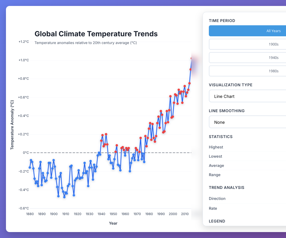 An interactive D3.js visualization showing global temperature anomalies from 1880-1928, built with React and modern JavaScript.