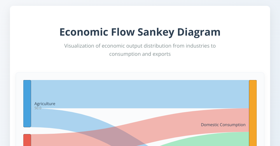 The diagram visualizes flows from source categories (Agriculture, Manufacturing, Services) to destination categories (Domestic Consumption, Exports).