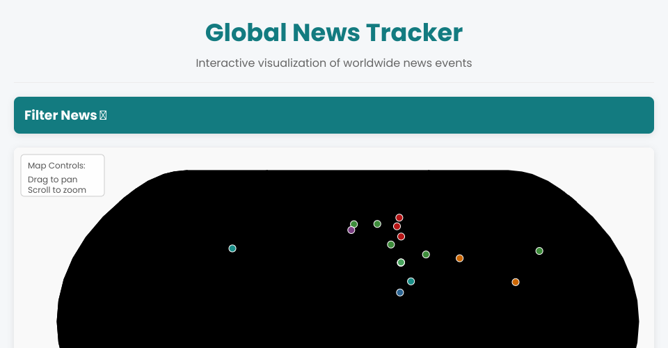 - Interactive world map showing news events from around the globe