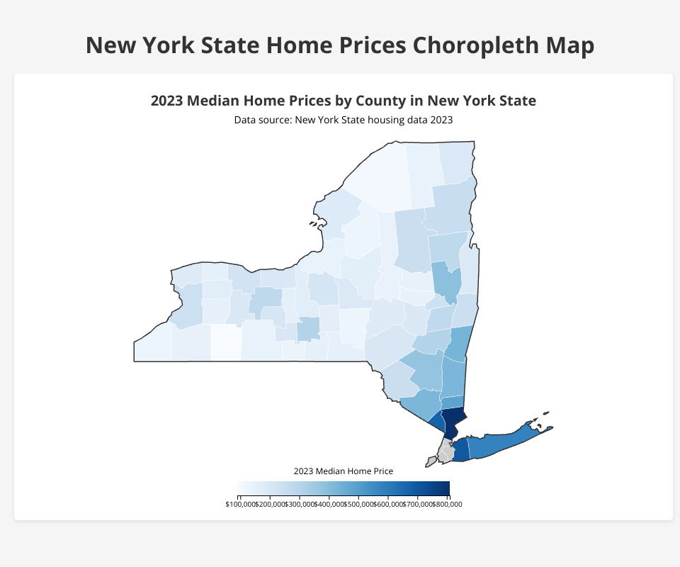 This visualization shows county-level median home prices for New York State counties in 2023.