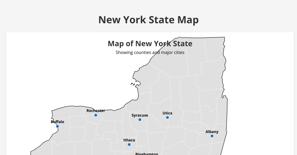This project displays an interactive map of New York State with county boundaries and major cities.