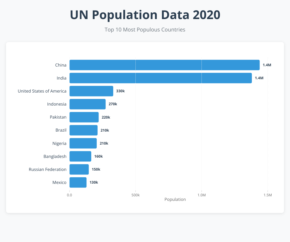 - Formatted Labels: Population numbers displayed with readable formatting (e.g., "1.4B" for billions)