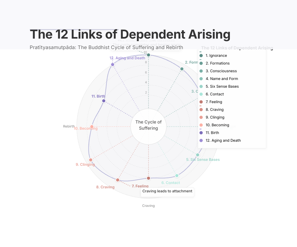 An interactive D3.js visualization of the Buddhist concept of Pratītyasamutpāda (Dependent Arising).