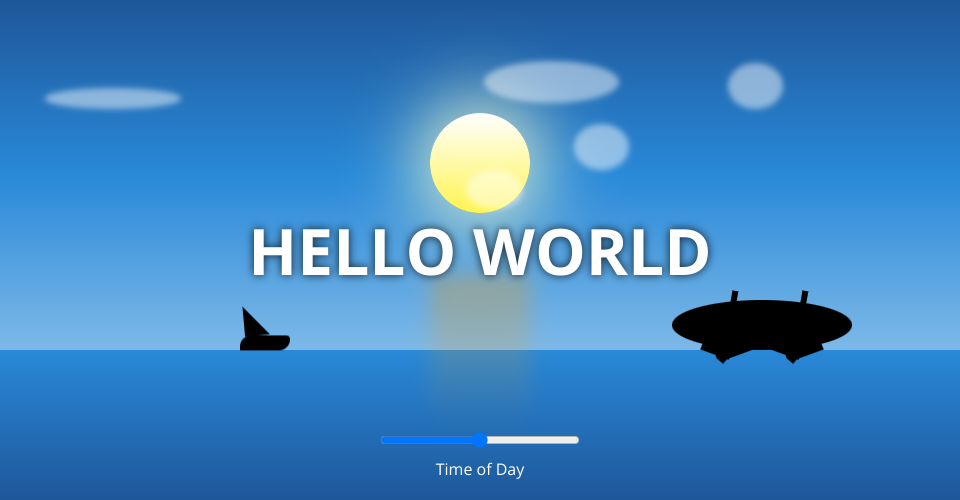 This visualization creates a beautiful, interactive sunset scene with several dynamic elements: