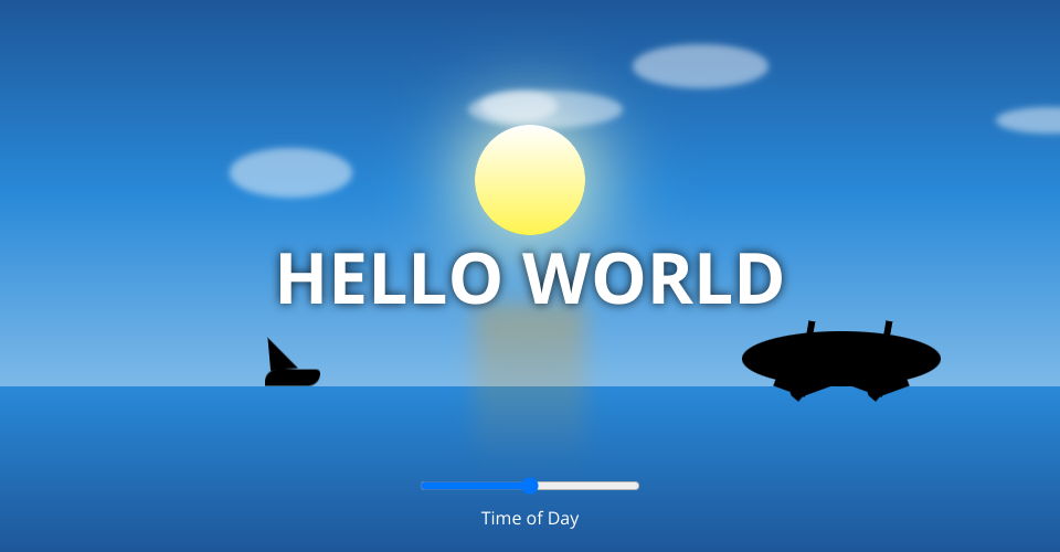 This visualization creates a beautiful, interactive sunset scene with several dynamic elements: