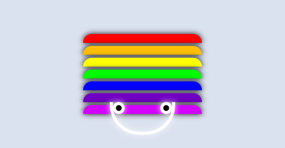 Each color band is created using a curved div with border-radius, and the neon effect is achieved through a combination of bright colors and CSS drop-shadow filters.