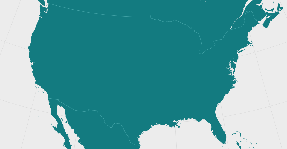 A world map showing country boundaries from World Atlas TopoJSON, polished for visual style, including graticules.