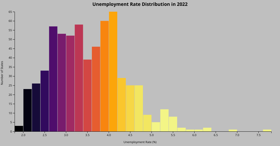 The histogram bars are colored based on the unemployment