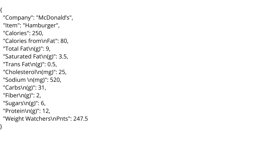It contains Nutritional values, including Calories and Micro-nutrients from six of the largest and most popular fast food restaurants: McDonald's, Burger King, Wendy's, Kentucky Fried Chicken (KFC), Taco Bell and Pizza Hut