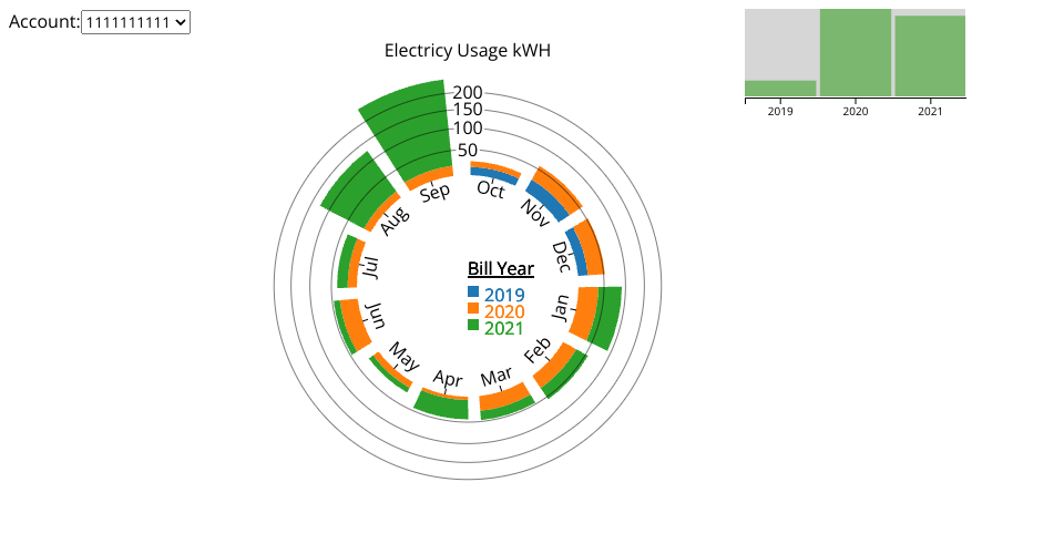 The context graph shows the years that the electrical data is over with a brush to limit the range. I think the brush would be more effective for data over more than 3 years, and I plan on synthesizing data to create a wider range (10 years or more).