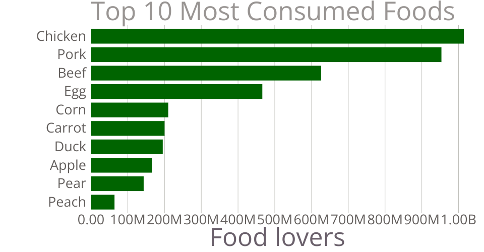 This bar chart shows population of the top 10 most delicious foods countries. The data comes from the year 2018 estimate in United Nations: World Population Prospects 2017. It also demonstrates customization of D3 axes.