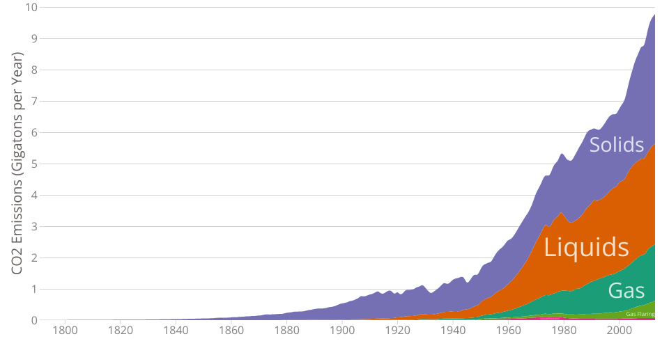 The segments "Solids", "Liquids", and "Gas" are the forms of fossil fuels being burned.