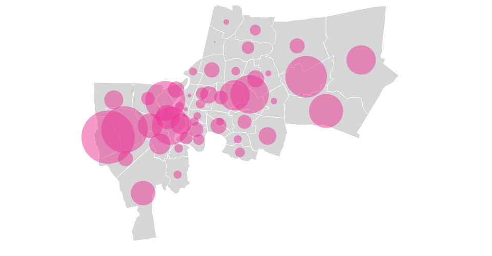 The SVG Mmap was load using D3 and eventListener was implemented on hover to show the number of new HIV cases in each district in year 2020. The size of the circle depends on the size of new HIV cases: bigger means larger number of cases.