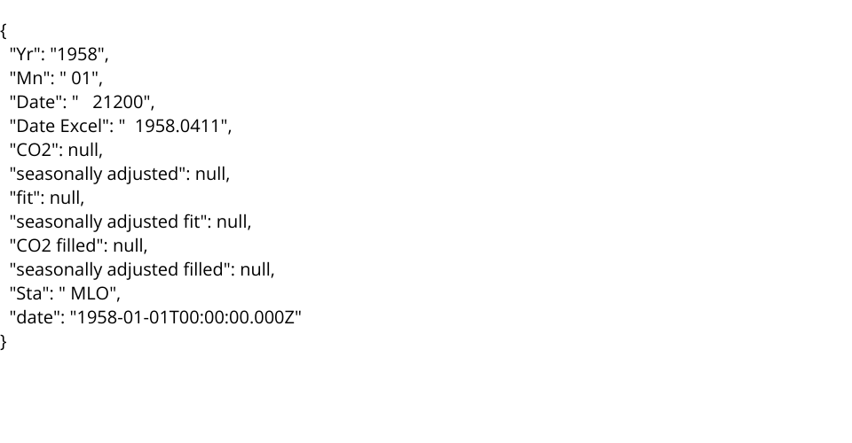 "-------------------------------------------------------------------------------------------" " Atmospheric CO2 concentrations (ppm) derived from in situ air measurements " " at Mauna Loa, Observatory, Hawaii: Latitude 19.5°N Longitude 155.6°W Elevation 3397m " " Since December 2022 sampling has temporarily been relocated to MaunuaKea, Hawaii " " Latitude 19.8°N Longitude 155.5°W Elevation 4145m " " " " Source: R. F. Keeling, S. J. Walker, S. C. Piper and A. F. Bollenbacher " " Scripps CO2 Program ( http://scrippsco2.ucsd.edu ) " " Scripps Institution of Oceanography (SIO) " " University of California " " La Jolla, California USA 92093-0244 " " " " Status of data and correspondence: " " " " These data are subject to revision based on recalibration of standard gases. Questions " " about the data should be directed to Dr. Ralph Keeling (rkeeling@ucsd.edu), Stephen Walker" " (sjwalker@ucsd.edu) and Stephen Piper (scpiper@ucsd.edu), Scripps CO2 Program. " " " " Baseline data in this file through 07-Jan-2024 from archive dated 08-Jan-2024 14:25:05 " " " "