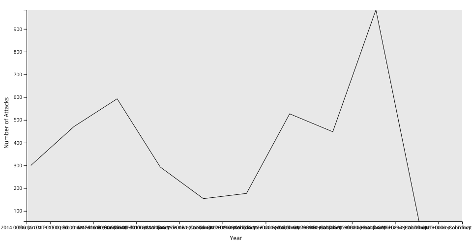A simple line viz showing annual cyber attacks dataset from below: CISSM Cyber Attacks CISSM-EDA