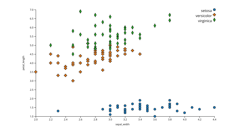 This project visualizes the famous [Iris dataset]) using a scatter plot created with D3.js. The scatter plot displays the relationships between different features of the Iris dataset, including sepal width, sepal length, petal width, and petal length. The three species of Iris flowers (setosa, versicolor, and virginica) are differentiated by different shapes in the plot.